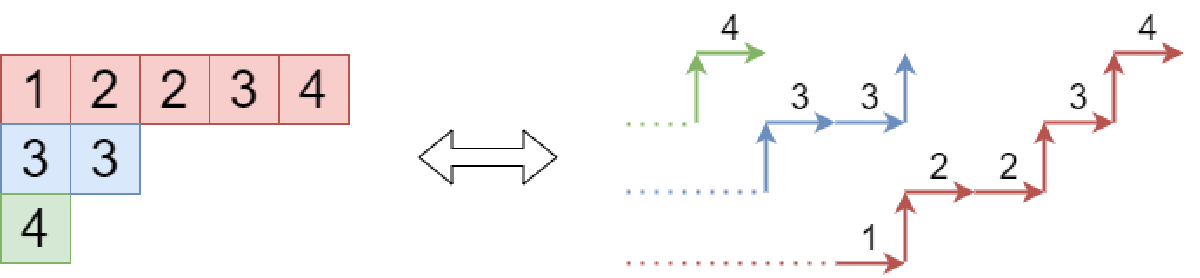 再び記事『ヤング図形と競技プログラミング』の図を使いまわしますが、ヤング図形はマヤ図形とみなすことができます。