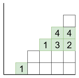 Kohnert 図形は Rothe 図形において、ある行の最も右端のマスを選び下に動かす(飛び越えてもよい)操作を好きな回数だけ行って得られる図形です。