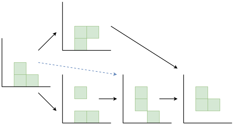おおむね Kohnert move と対応してそうですが、青い点線の部分が chute move poset にはないようです。