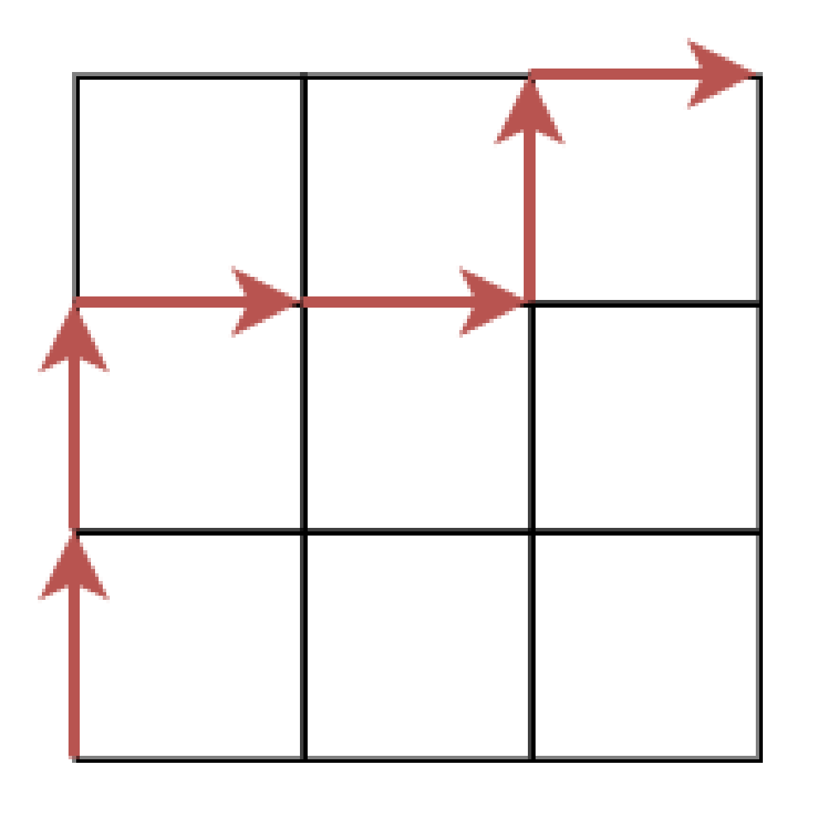この問題は次のようにして経路の問題に言い換えることができます。原点 から出発します。( があったら上に 1 つ進み、) があったら右に 1 つ進みます。(())() の場合次のような経路になります。