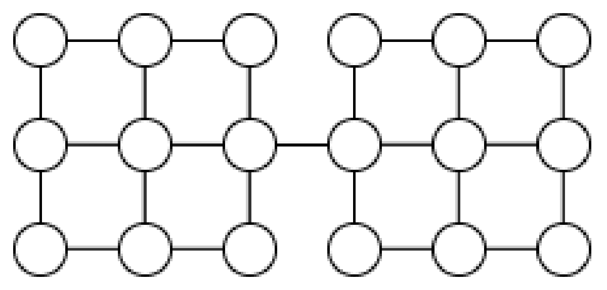 道路ネットワークをグラフとして捉えます。どの道路が使用不可能となったときに影響が大きいでしょうか。例えば以下のグラフでは、中央の辺をなくすと連結でなくなってしまうため、非常に脆いです。